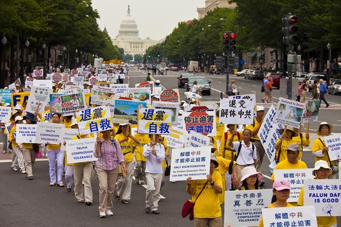 法轮功学员十年反迫害在华盛顿特区举办大游行,呼吁各界关注迫害