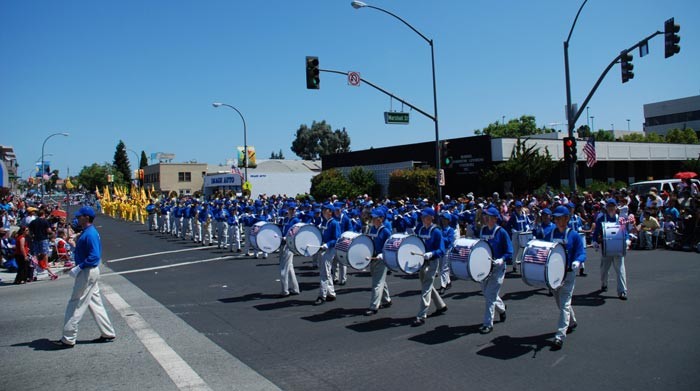 旧金山湾区法轮功学员应邀参加红木城游行获观众热情掌声