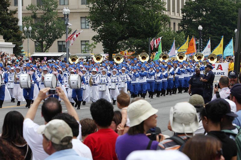 法轮功学员参加美国独立日国庆游行,将法轮大法的美好带给数万观众