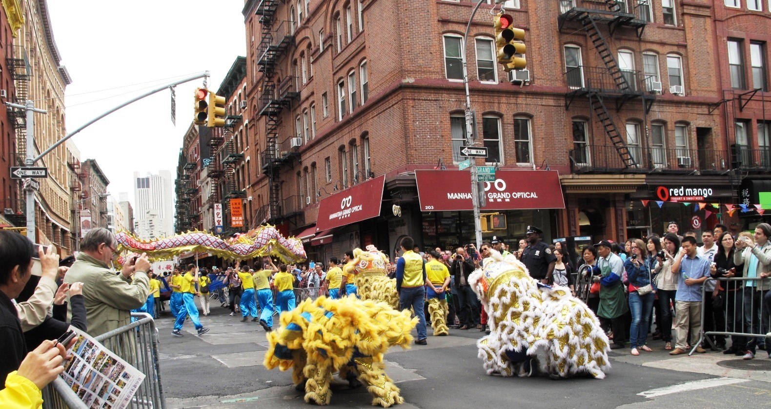 法轮功学员参加纽约法拉盛华人新年游行,壮观的队伍最受欢迎