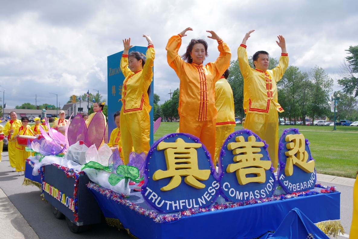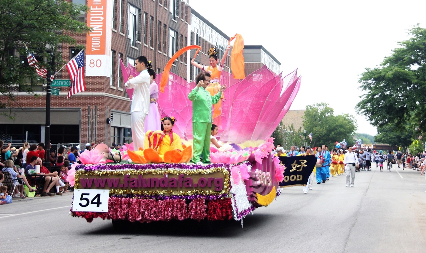 法轮功学员参加芝加哥瑞柏市劳动节游行,展现大法的美好