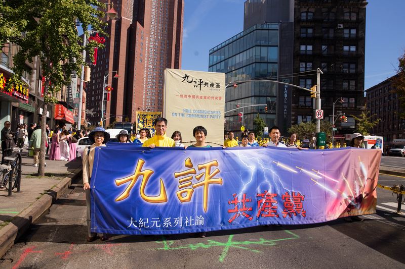 法轮功学员在纽约华埠大游行,为民众送去法轮大法的美好,民众盛赞.