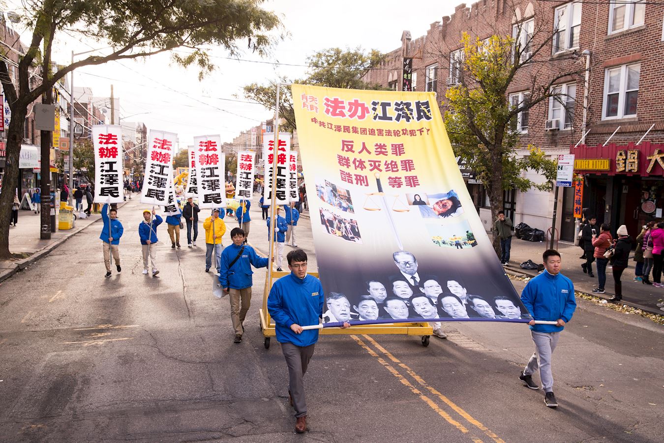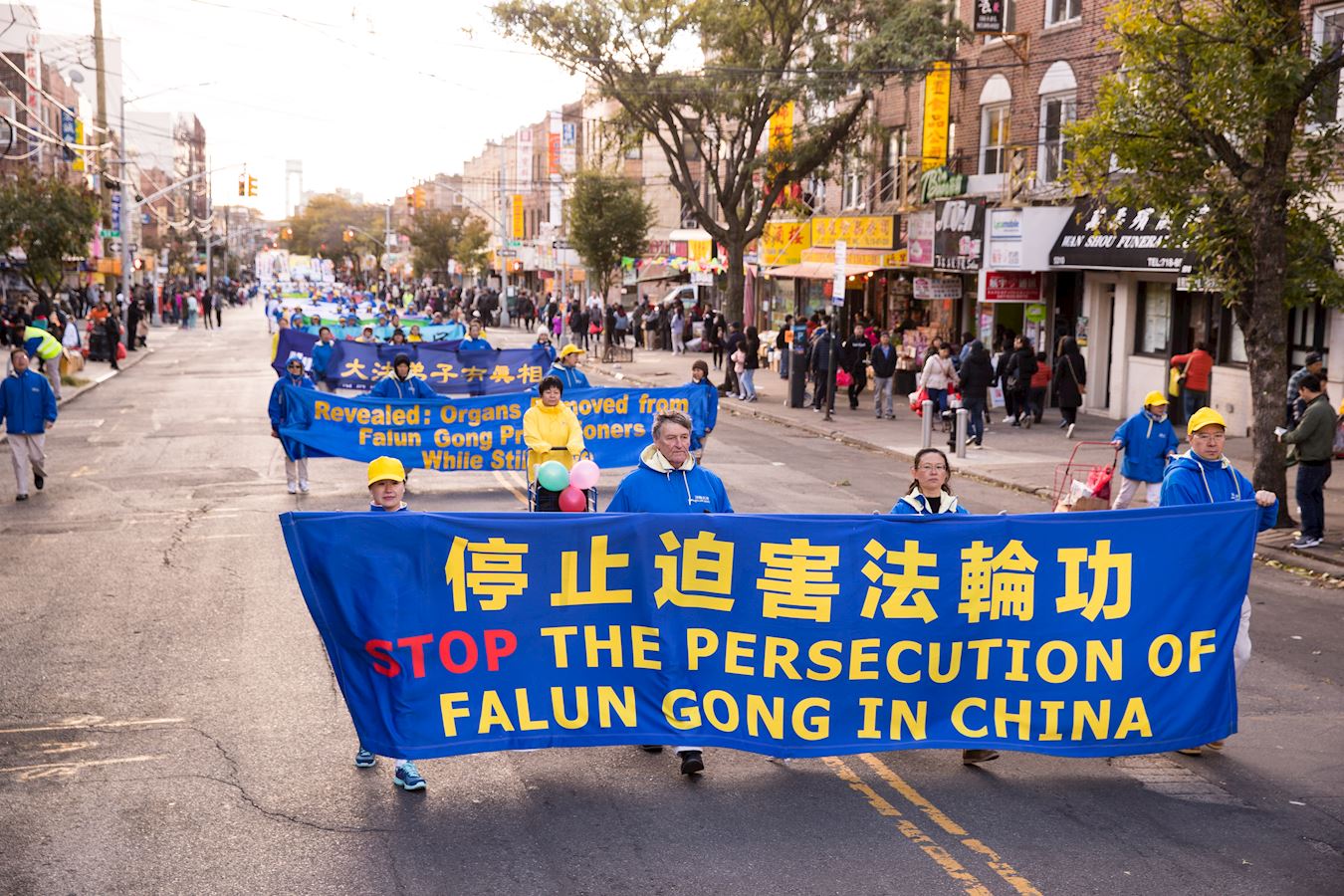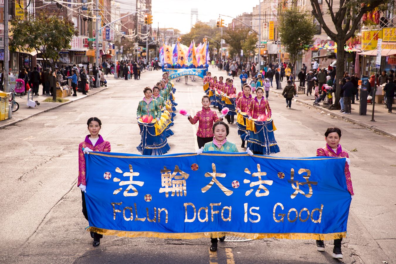 法轮功学员在纽约的华人社区——布碌仑八大道举行盛大游行。