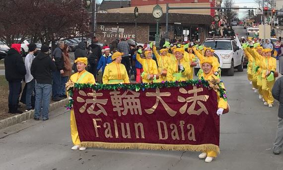 法轮功学员参加纽约米德敦市圣诞树点灯游行