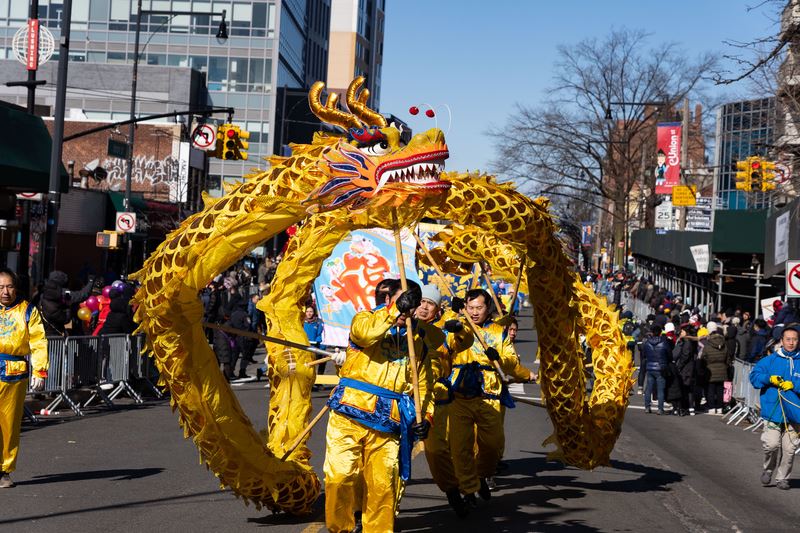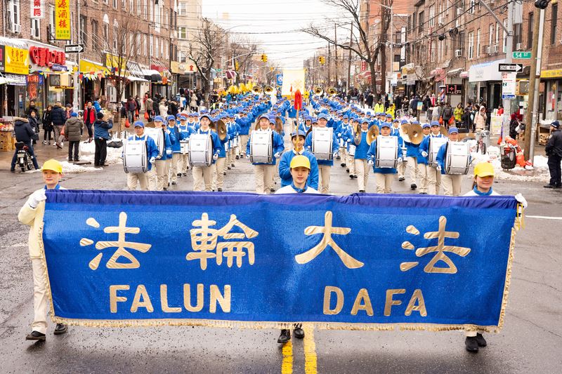 法轮功学员参加纽约华人中国新年大游行,受到了社区民众的瞩目和赞扬。