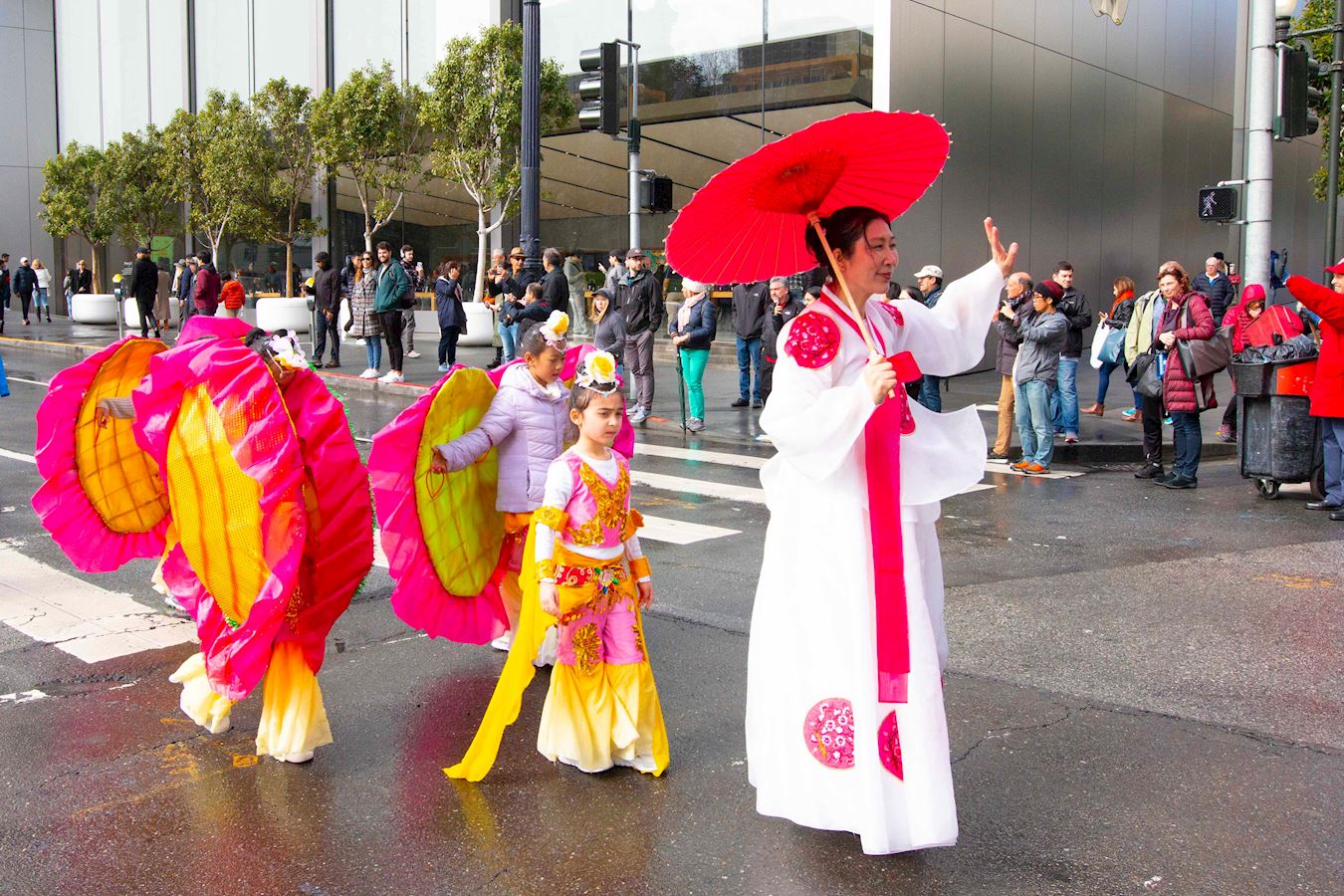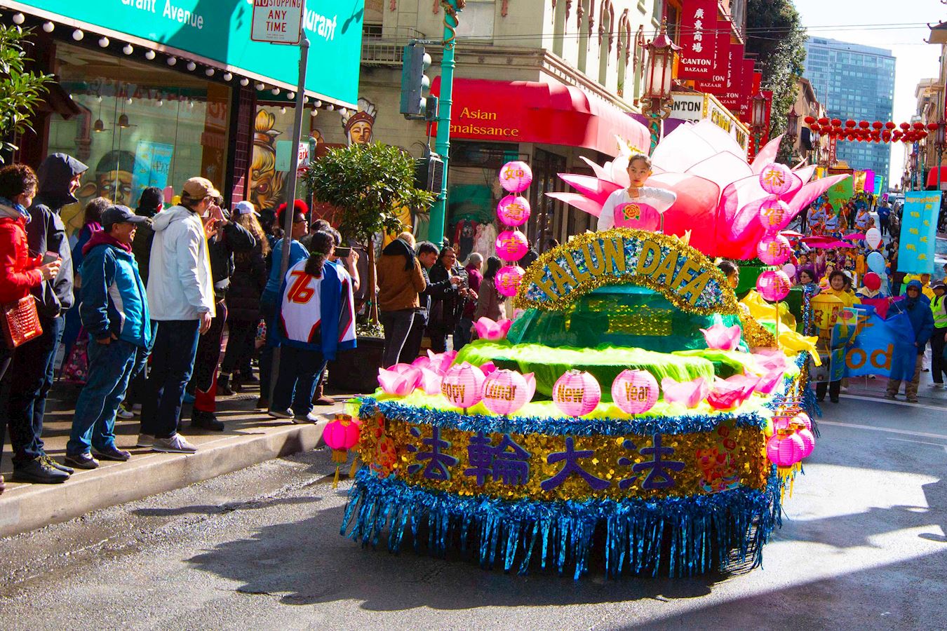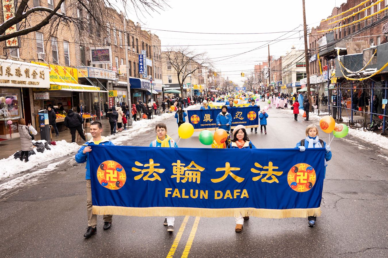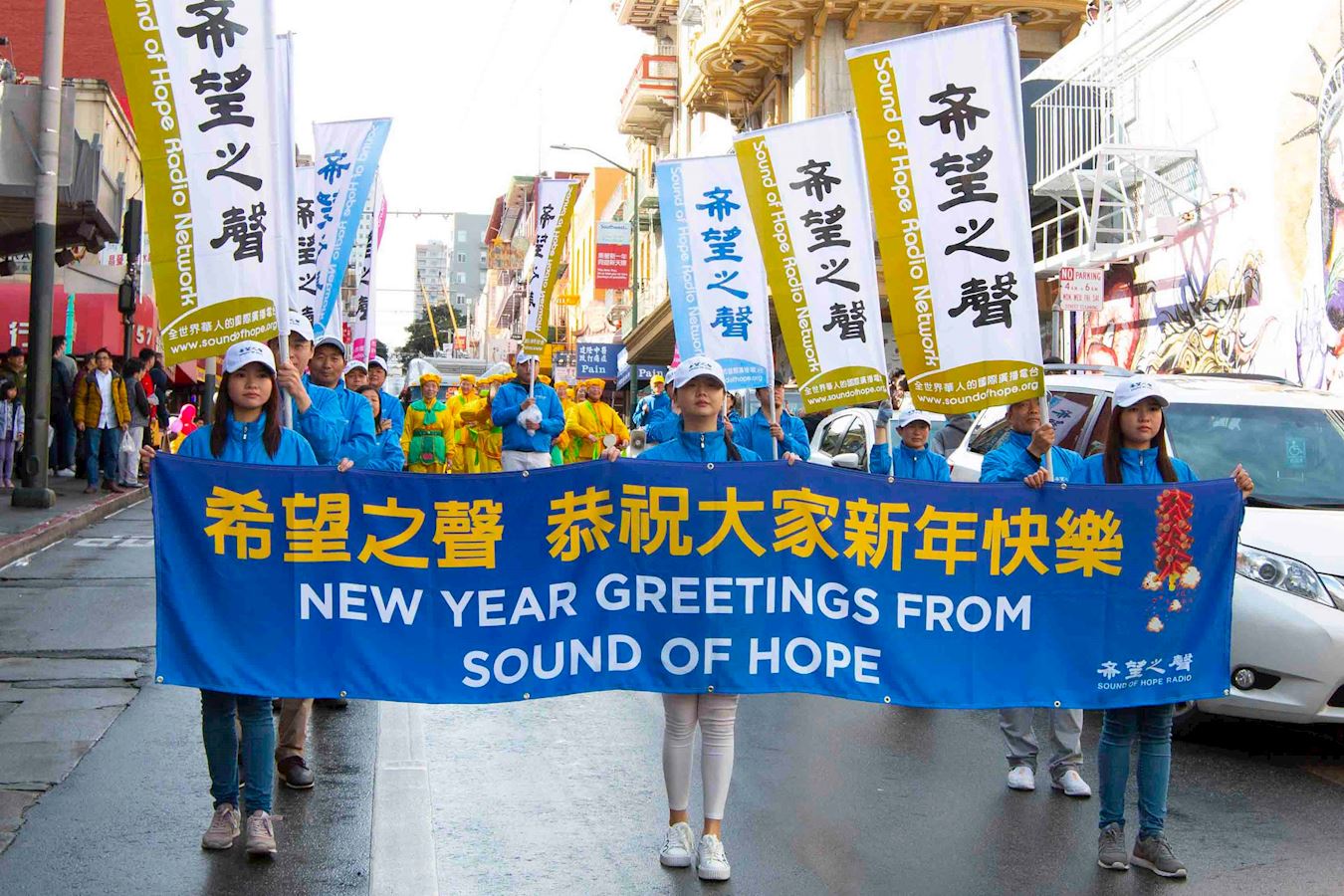 法轮功学员新年游行,给旧金山民众拜年、送祝福