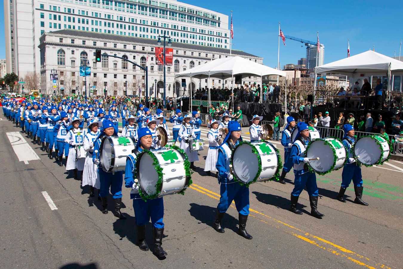 法轮功学员组成的美西天国乐团参加旧金山圣派翠克日大游行