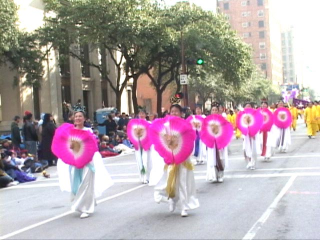 美国德州法轮大法学员参加休士顿感恩节盛大的游行