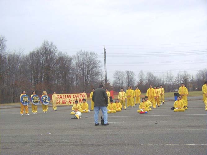 法轮功学员参加2002年华盛顿DC樱花节游行,图为学员在接受记者采访