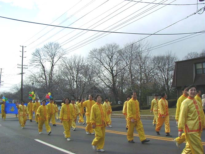 法轮功学员参加新泽西州迪乃克市迎新年庆祝活动受到热烈欢迎--图为参加迎新年庆祝游行