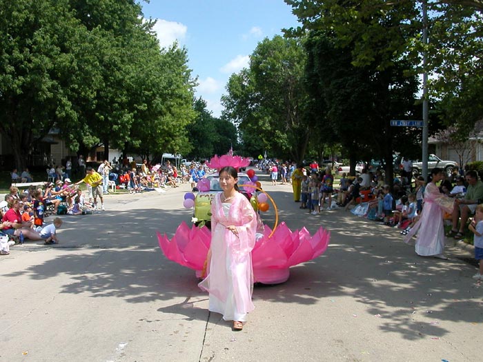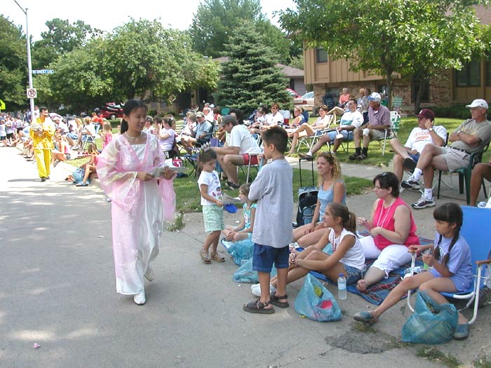 爱荷华州印第诺拉市学员游行中向人们展示大法的美好