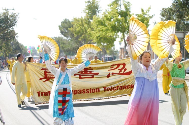 美国加州圣荷西迎春大游行 法轮功队伍受欢迎