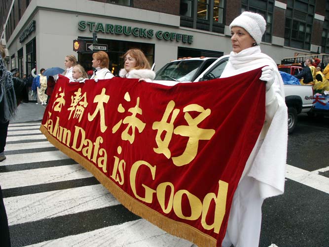 2004年11月20日进行的曼哈顿大游行中的法轮大法洪传世界方阵
