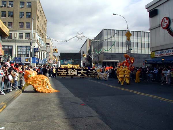 法轮功学员参加法拉盛新年游行 法轮功学员的舞狮、舞龙深受观众欢迎
