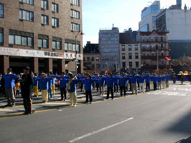 华府法轮功学员参加华埠新年游行庆典 图为功法演示