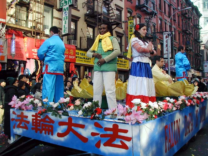 法拉盛新年游行 法轮功学员的游行队伍多姿多彩