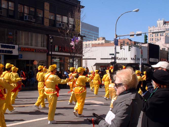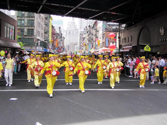 纽约中国城国庆日游行 法轮功应邀参加 多姿多彩的法轮功队伍深受观众欢迎
