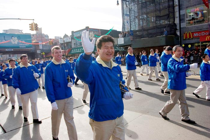 纽约华埠新年大游行 法轮功队伍再展雄姿,给民众所带来的欢乐与祥和。2006-2-5