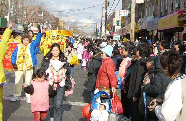 法轮功学员参加纽约法拉盛新年游行受欢迎2006-1-28