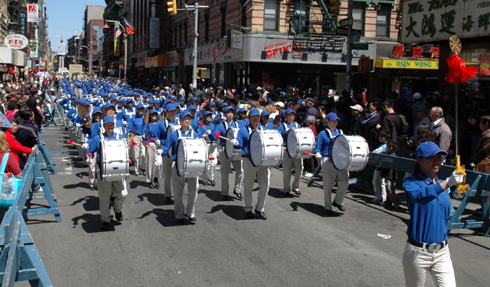 纽约华埠新年大游行法轮功学员新组建的军乐队是首次在曼哈顿中国城亮相2006-2-5