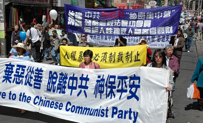 纽约华埠大游行声援千万退党呼吁彻查中共劳教所 2006-4-30