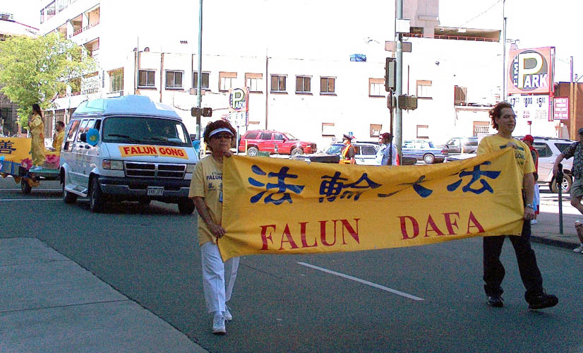 法轮功学员在芝加哥举行“法轮大法好”主题游行 展现大法的美好并揭露中共对法轮功的残酷迫害2006-6-24