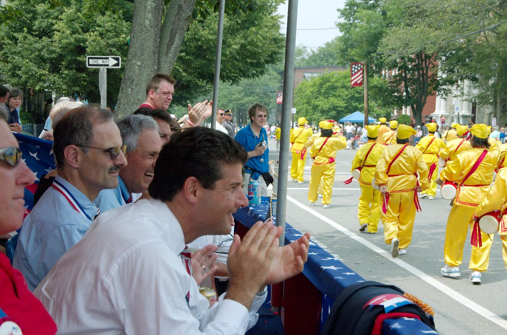 法轮功学员参加在波士顿的Dorchester Day游行,图为民众热烈的鼓掌2006-6-4