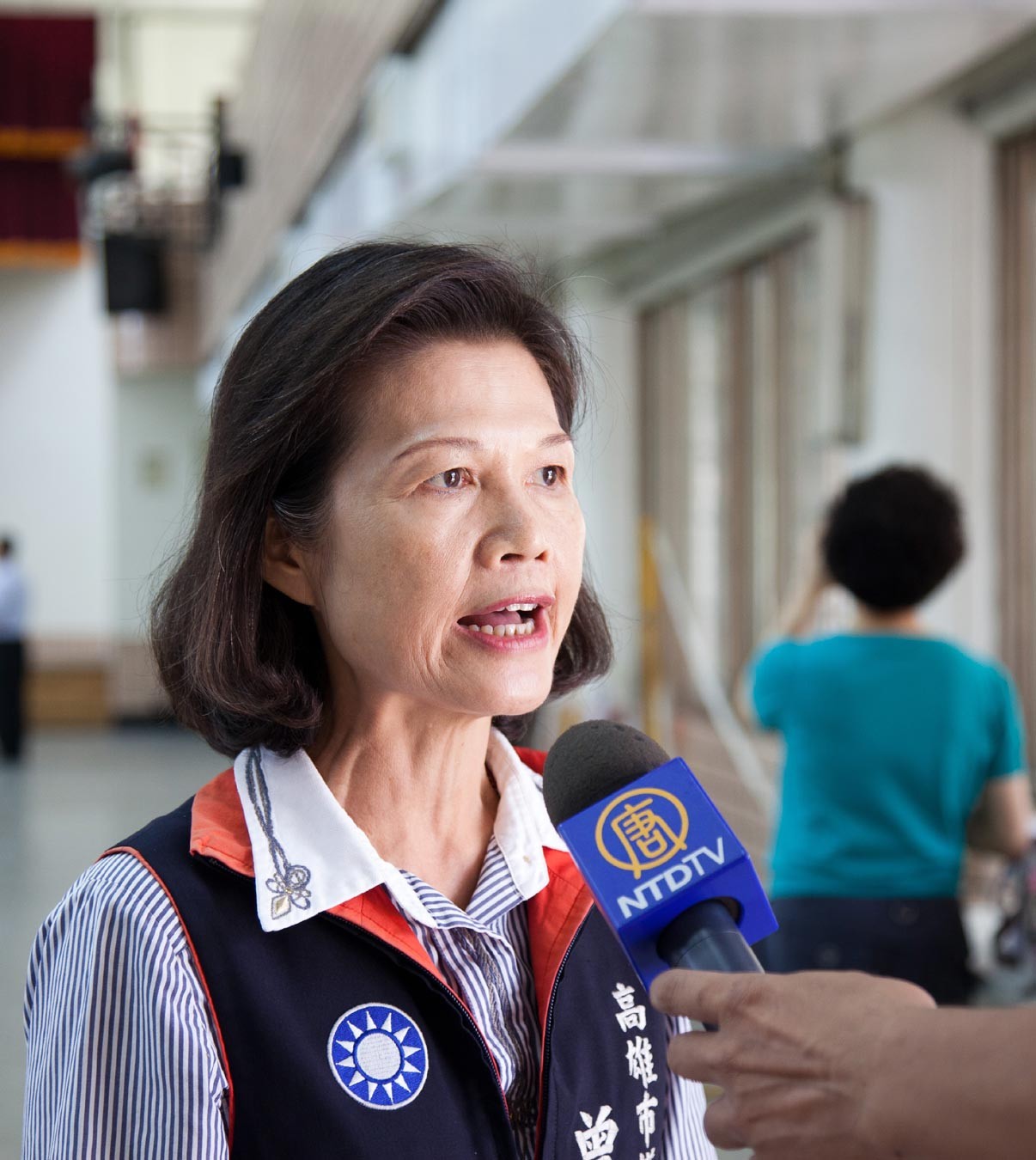 头份镇镇长徐定祯(右)致词时,特别“谢谢法轮大法的参与”。