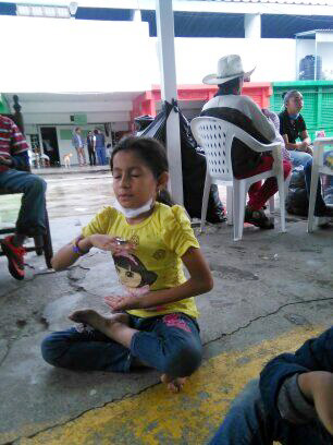 法轮功学员在墨西哥地震灾区教炼功法,传播大法的美好