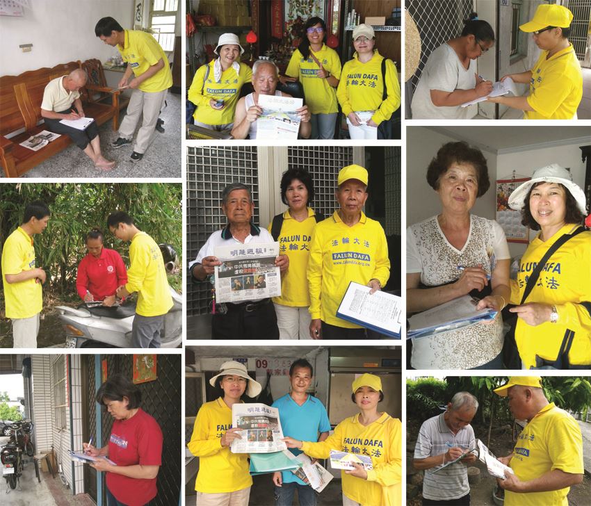 台湾灯会,学员展现修炼的美好图为学员向民众介绍法轮功