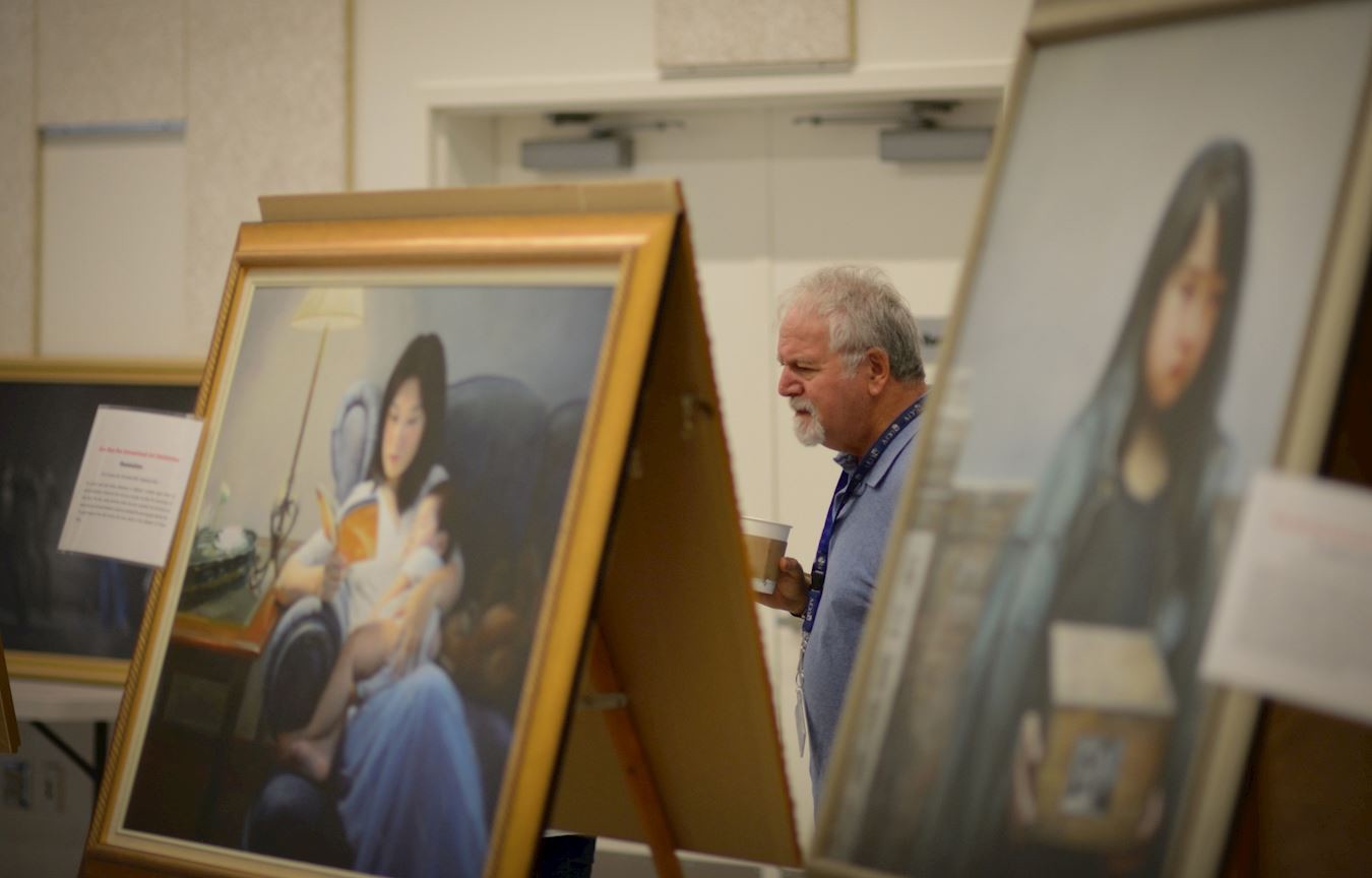 法轮大法学会在州府举办“真善忍国际美展”观众表示看到画展美丽和希望。