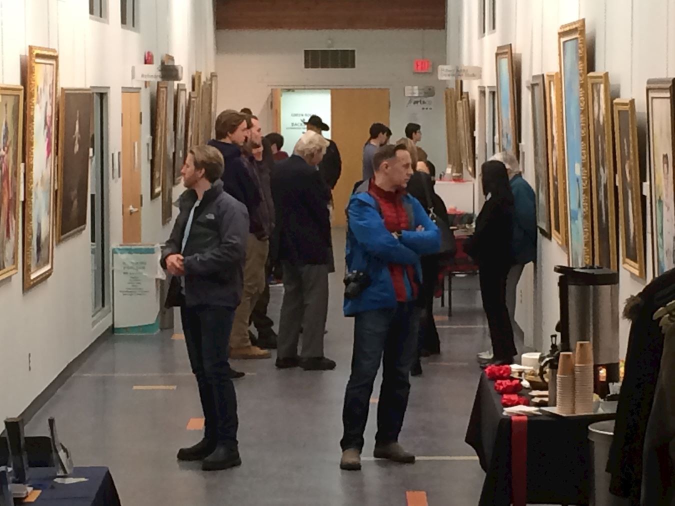 ACDC社区画廊内关看真善忍国际美展作品的当地民众