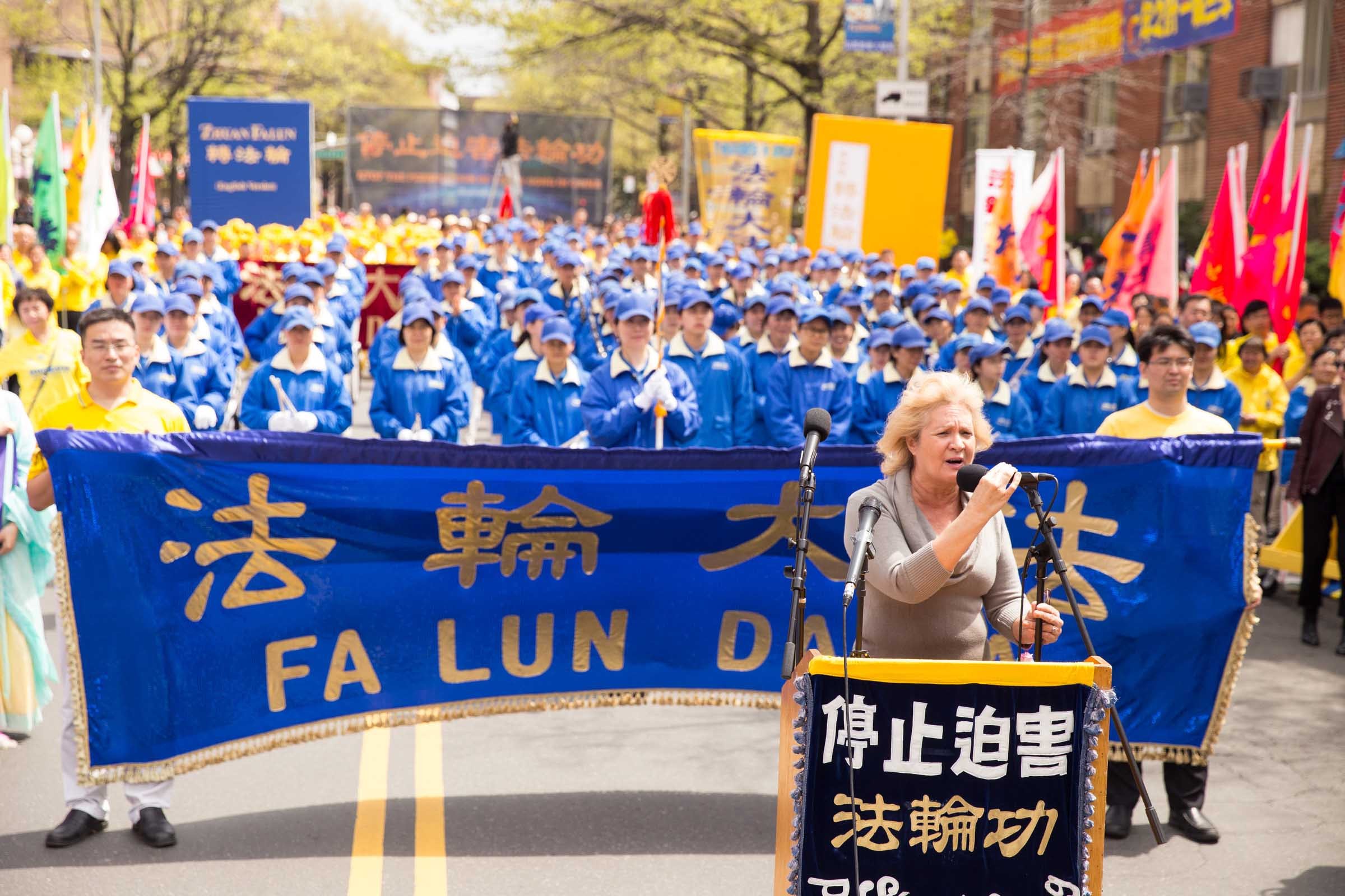 法轮功反迫害十六周年,在首都集会图为宗教自由委员会主席Dr. Katrina Lantos Swett发言