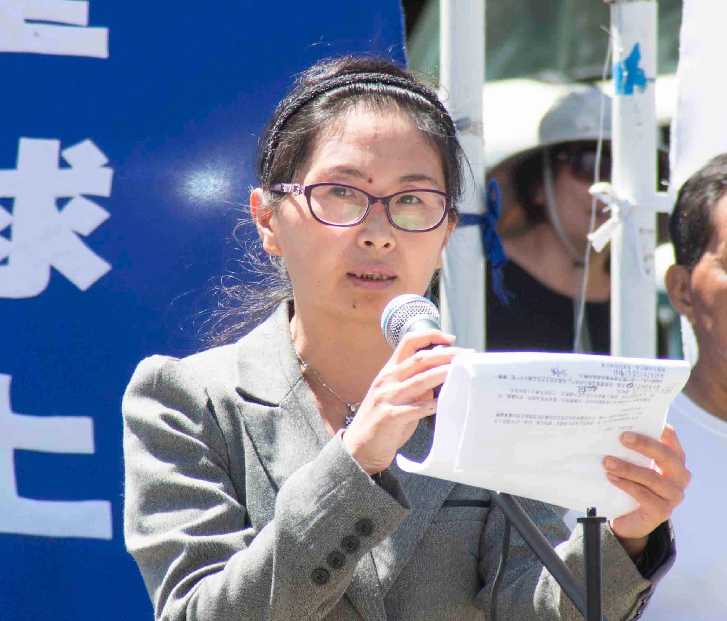 法轮功反迫害十六周年,在首都集会图为记者无疆界代表 Margaux Ewen发言