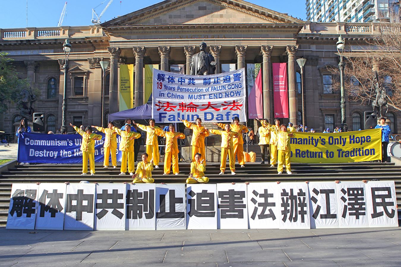 法轮功学员在市中心State Library前,举行“七二零反迫害”集会,呼吁制止迫害