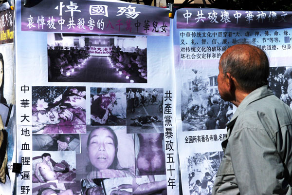 旧金山湾区各界人士在华埠花园角举行“中华国殇日”集会图为真相图片展吸引过往民众2007-9-30