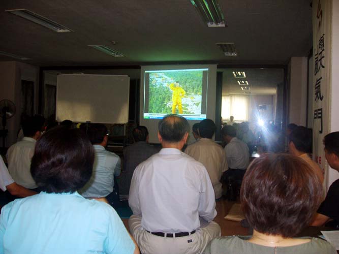台湾新竹县郑县长、竹东镇卢镇长双双莅临竹东社区学院主办的『法轮大法说明会』