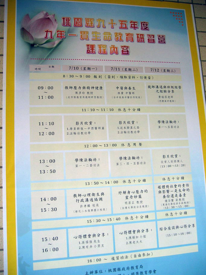 台北县暑期生命教育教师研习营吸引八十多位老师报名参加听取法轮功修炼体会