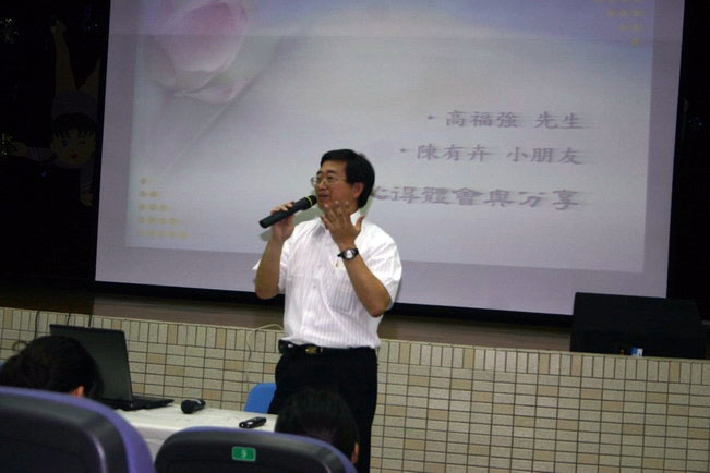 大法学会及南投光荣国小举行生命教育研习营图为中山大学副教授杨硕英分享修炼心得2007-8-20至21