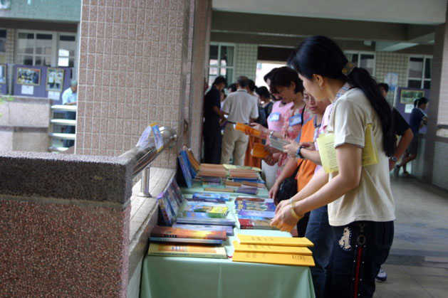 台湾法轮功研习会在桃园平镇市图书馆展开图为研习会现场学员陈述大法的美好2007-7-10至11