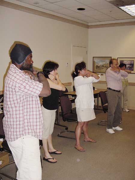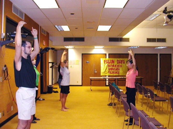 德州爱尔帕索学法轮功的人越来越多 图为法轮功教功班