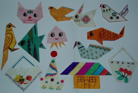大陆学员采用手工折纸、剪纸等方式 并附上真相短句向小学生讲真相