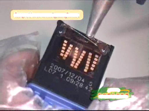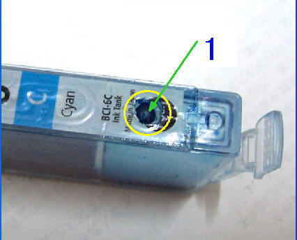 IP1600墨盒出现空气的排除办法图为在墨盒上钻一个孔用来抽空气