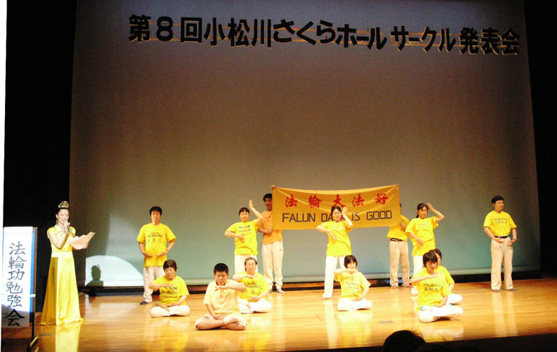 法轮功学员在东京社区活动中展现大法美好图为祥和功法演示2007-6-3