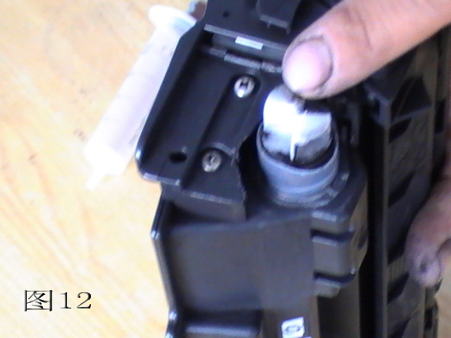 惠普HP1010/1012/1020激光打印机硒鼓加粉图解图为第九步、清理磁辊及粉仓