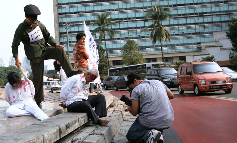 Published on 10/10/2006 雅加达反酷刑展揭中共迫害 民众震惊(图)