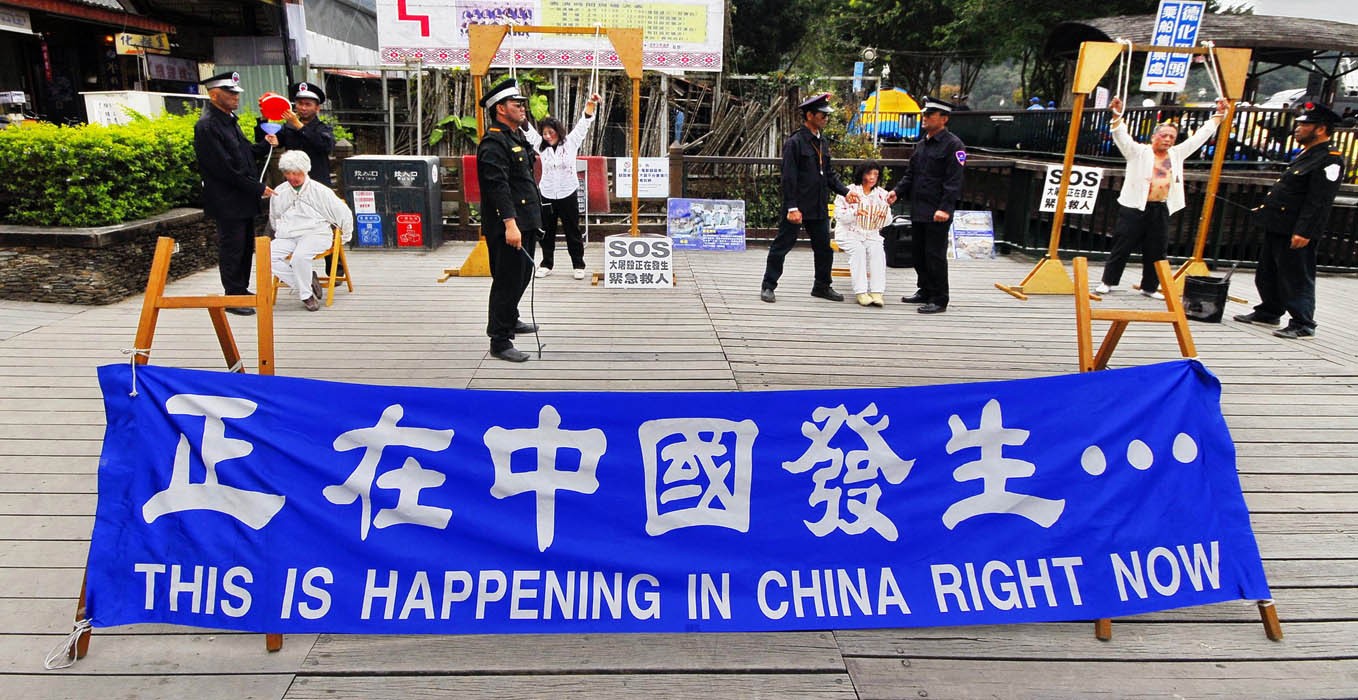 日月潭湖畔的正义呼唤图为真人模拟酷刑展