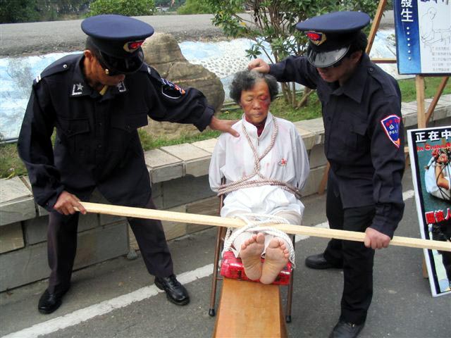 台湾新竹反酷刑展引起强烈反响 展示的酷刑之二:老虎凳