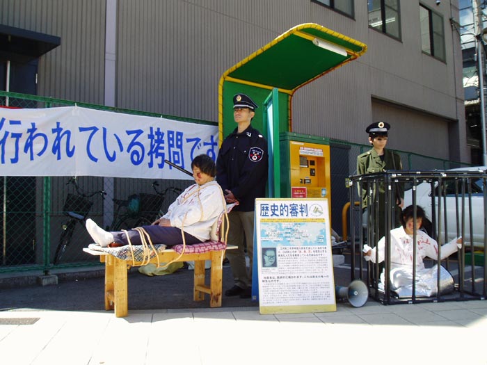 日本法轮功学员大阪法院前演示中共酷刑,揭露迫害
