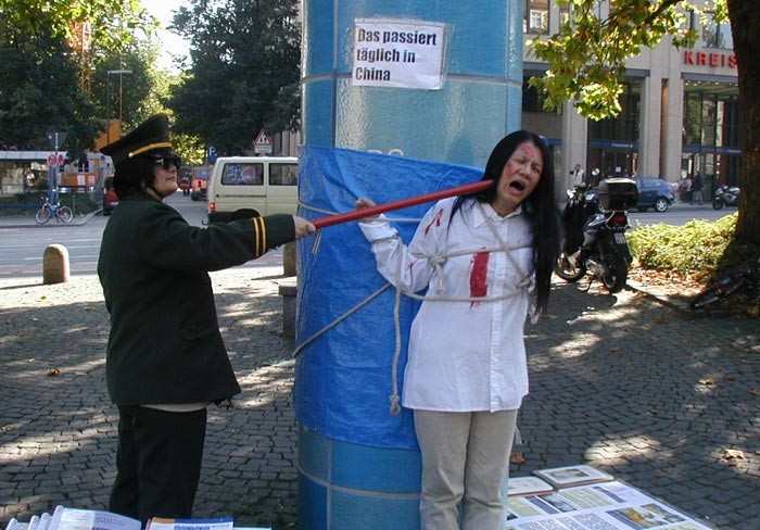 法轮功学员应人权组织邀请在波恩演示中共对法轮功学员的迫害